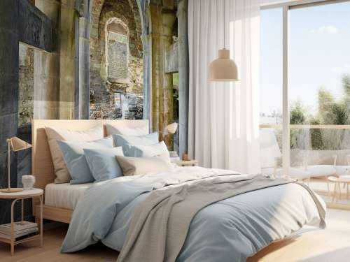 Abandoned building with arches. With this photo wallpaper on the wall, it is as if you can walk into the abandoned building.