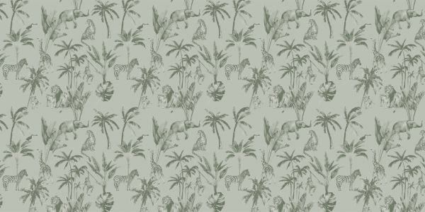 A beautiful illustrated jungle pattern in the colors green and gray.