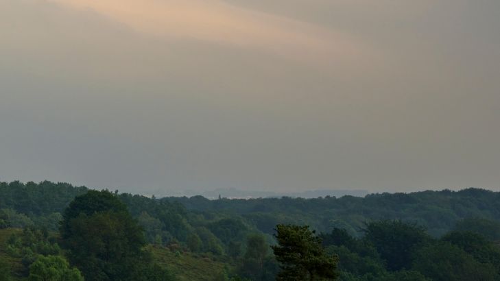 Dreigende plankwolk (Shelfcloud) boven heidegebied