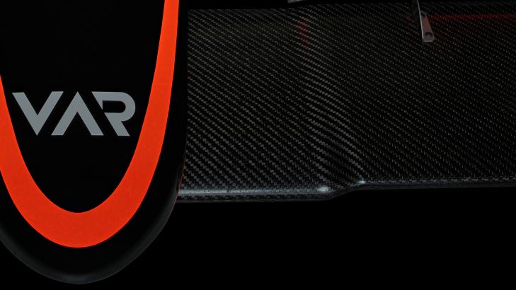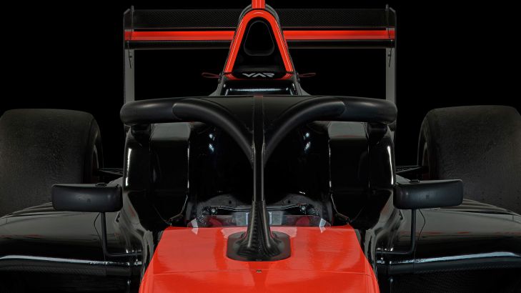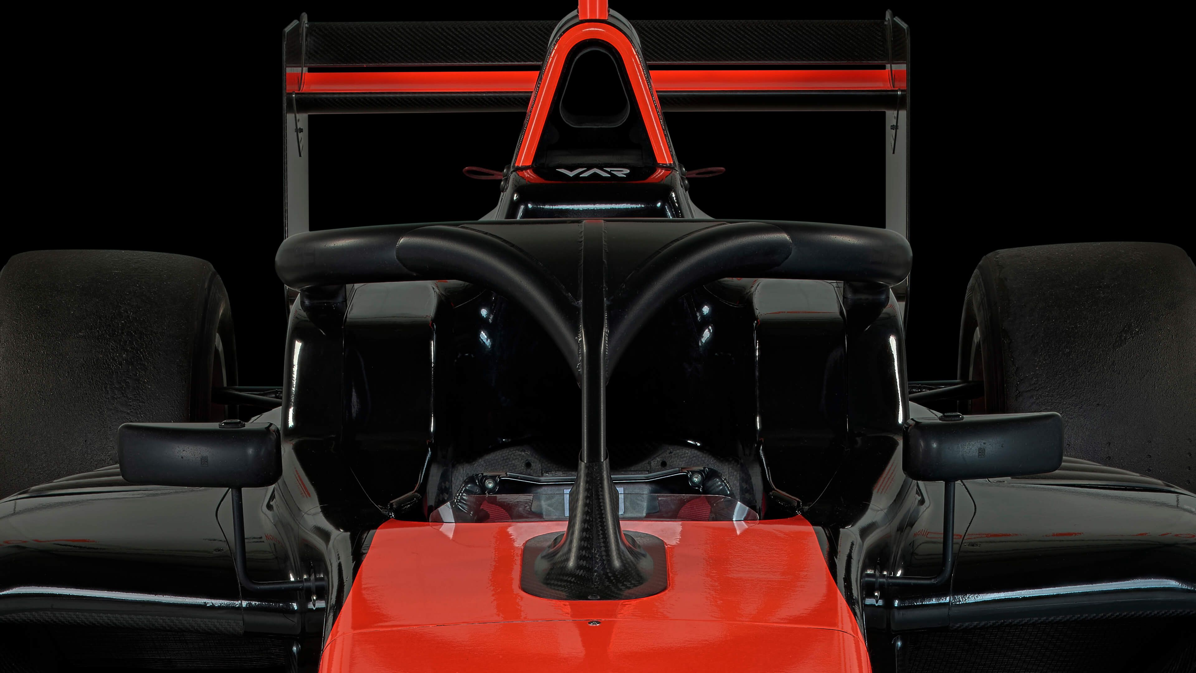 Zwart fotobehang van de voorkant van een Formula 3 raceauto in ongekende hoogwaardige kwaliteit met fantastische details zoals de carbon voorvleugel.