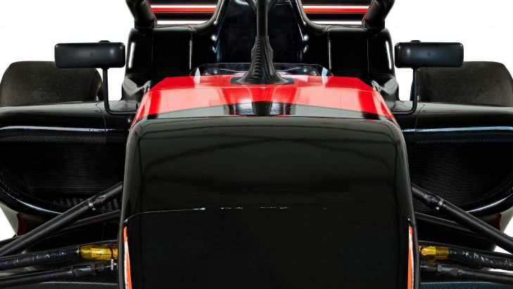 Voorkant van een Formula 3 raceauto. De foto is genomen vanuit een laag standpunt en is vastgelegd in ongekende hoogwaardige kwaliteit met fantastische details zoals de Halo. Met dit fotobehang lijkt het net of de raceauto jouw kamer in komt rijden!