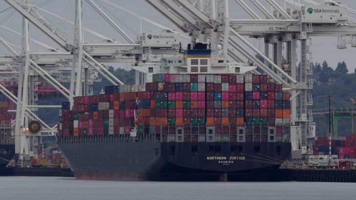 Hijskranen voor het lossen van containerschepen in een haven