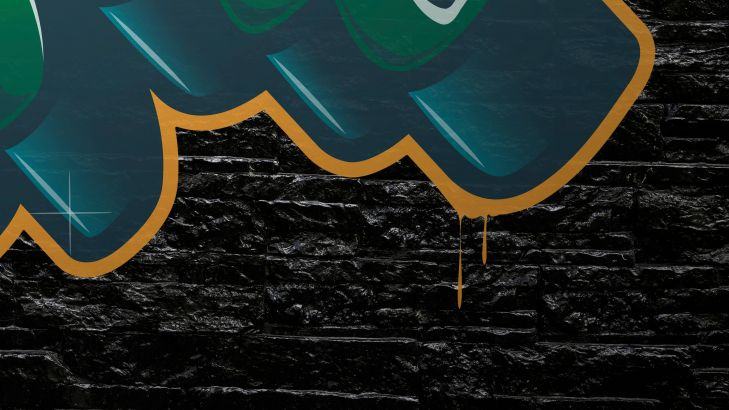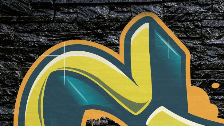 Graffiti on black stone wall. Because of the black stones the graffiti on this wallpaper stands out nicely.