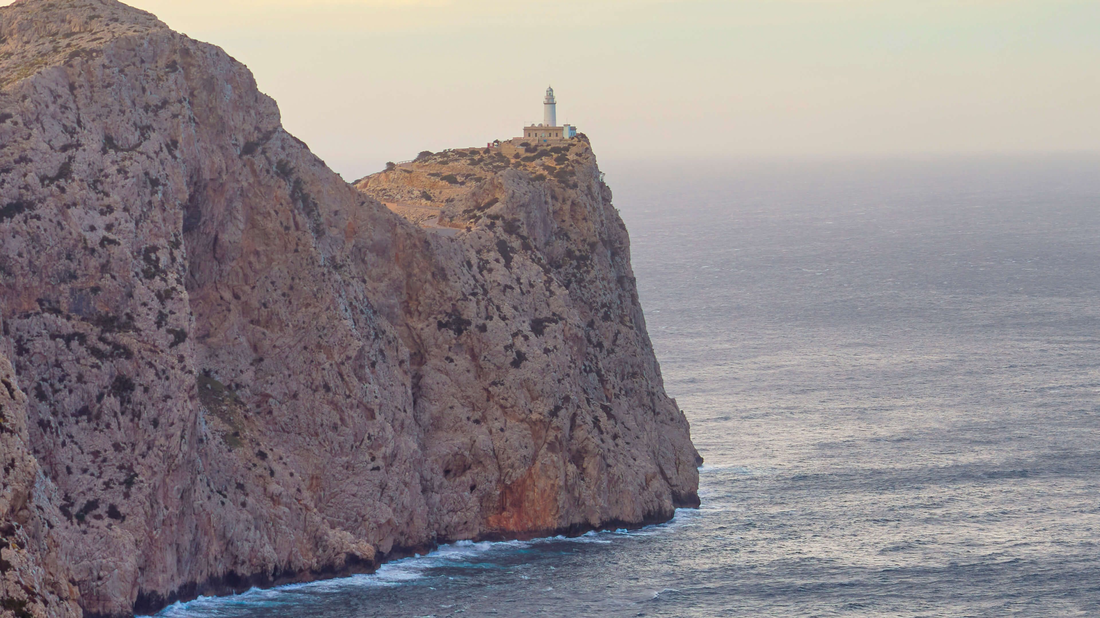 Vuurtoren op het einde van een ruige rotswand