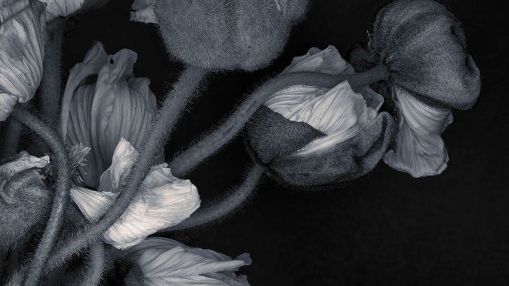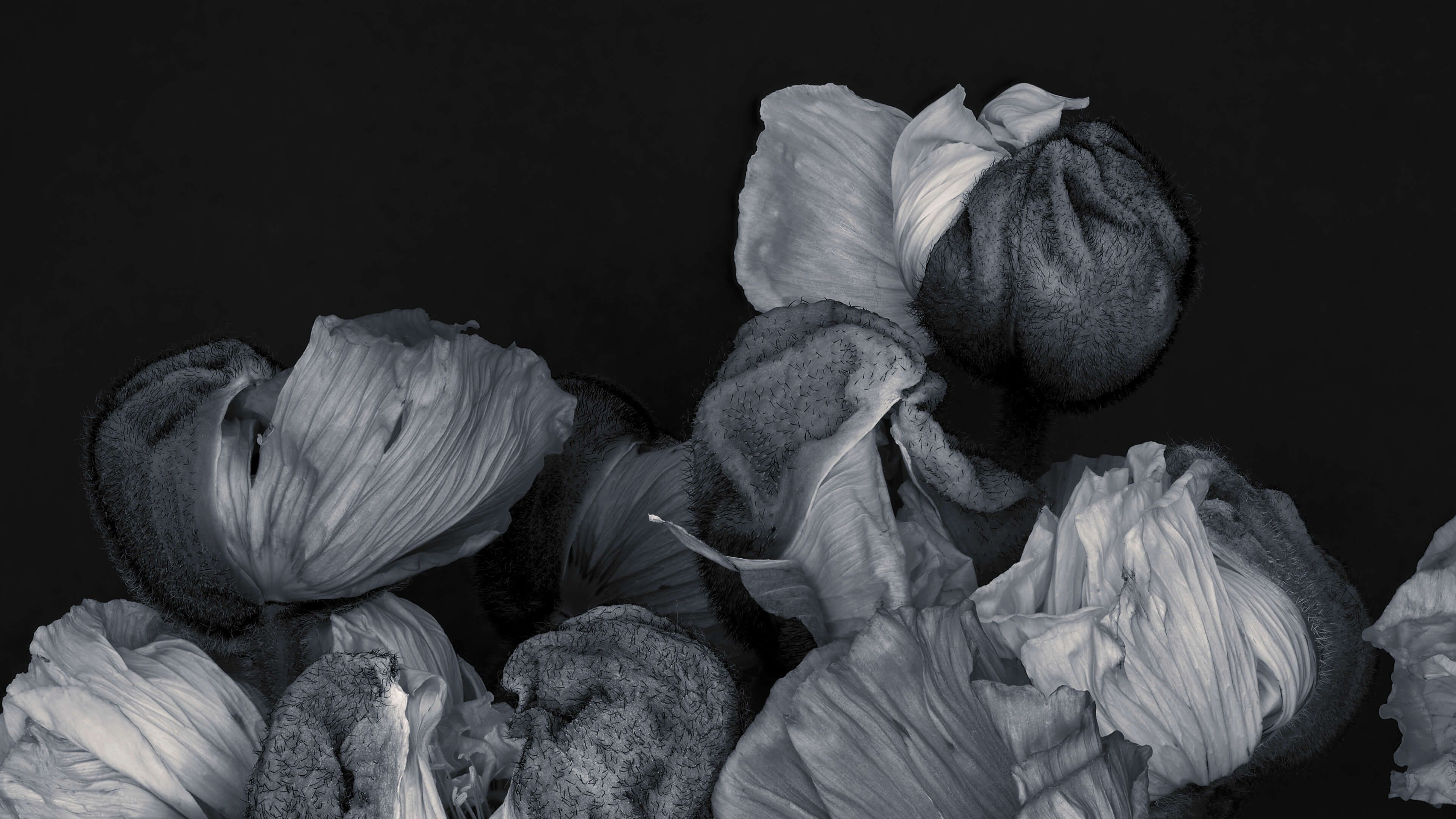 Fotobehang - Schilderachtige bloemen zwart-wit