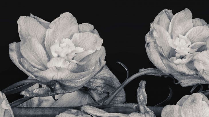 Fotobehang - Weerspiegeling bloemen zwart-wit