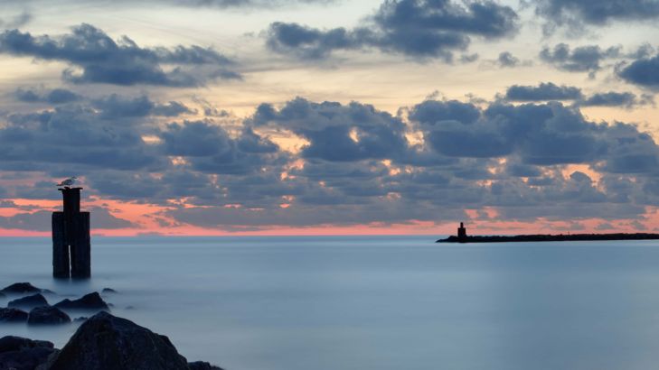 Mooi zonsondergang bij De Brouwersdam, dit is het zevende bouwwerk van de Deltawerken.