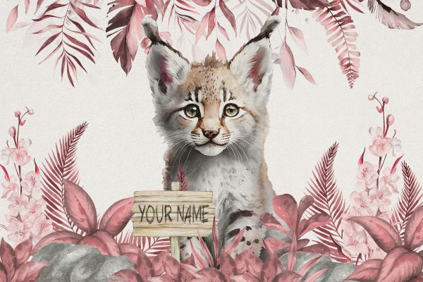 Baby lynx in the jungle pink Peel and Stick Wallpaper