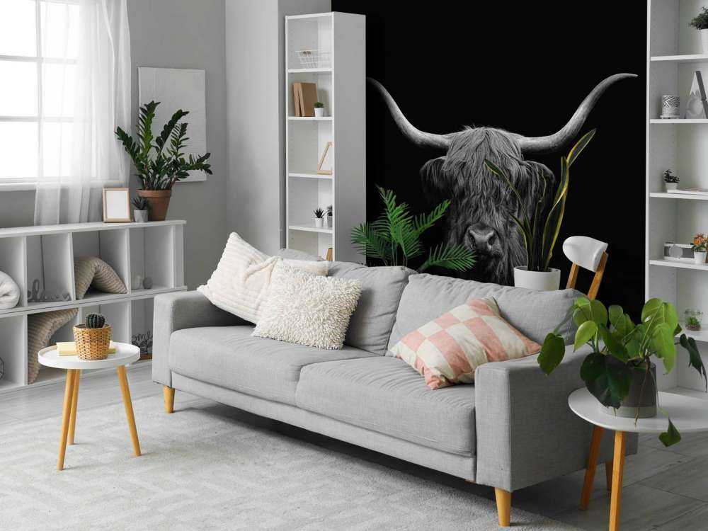 Black and white Scottish Highlander Peel and Stick Wallpaper
