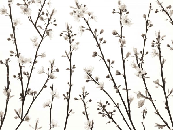 Cherry blossom branches on photo wallpaper. This photo wallpaper will turn your wall into a real eye-catcher.