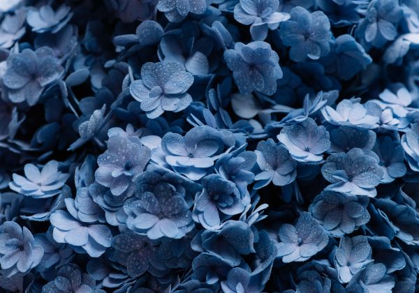 A close-up of blue hydrangeas. Combine this wallpaper in the dining room, for example.