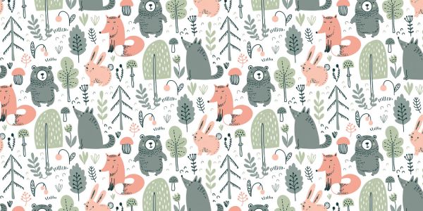 Cute pattern with forest animals in different colours.