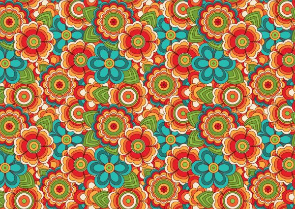 Colourful retro flowers in vintage style. This photo wallpaper will turn your room into a real 70s room.