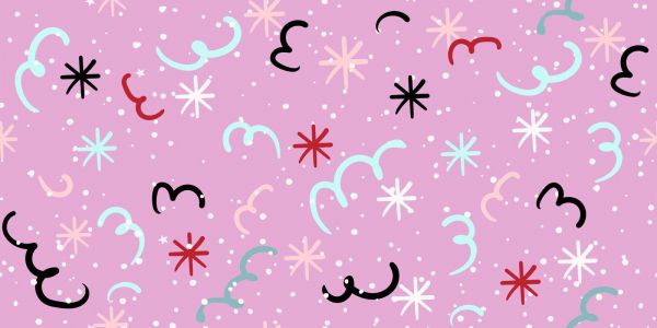 A playful pattern with irregular curls, little stars and dots on a lilac background — perfect for festive occasions or cheerful interiors.