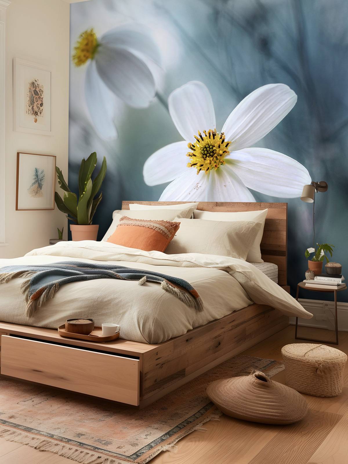Cosmos flowers in nature. Combine this photo wallpaper in your living room or bedroom for even more atmosphere.