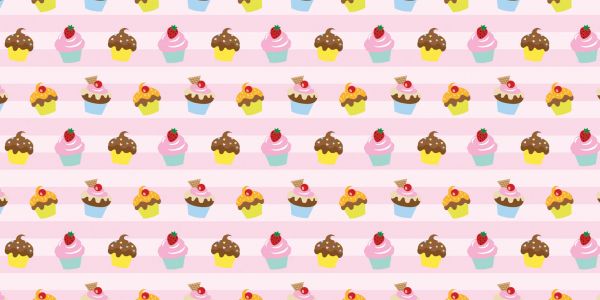 Photo wallpaper with different kinds of cupcakes on a striped pink background