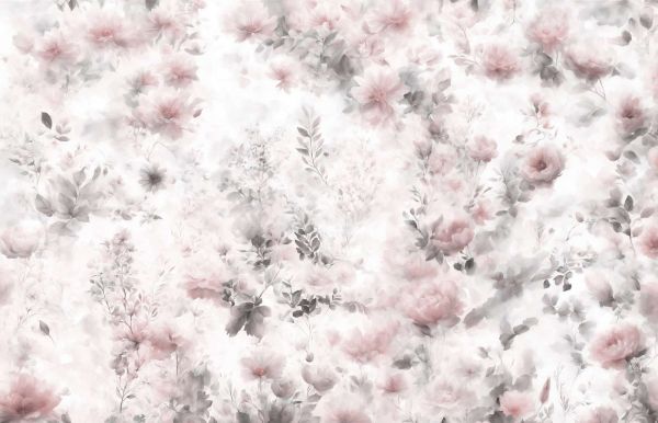 This design exudes a refined and romantic atmosphere with its lush flower garden in soft pastel colors. The roses, peonies and wildflowers appear almost watercolor-like, with flowing brushstrokes adding a sense of depth and movement. The subtle shades of pink, cream and green are harmoniously combined, creating a serene and dreamy ambiance.