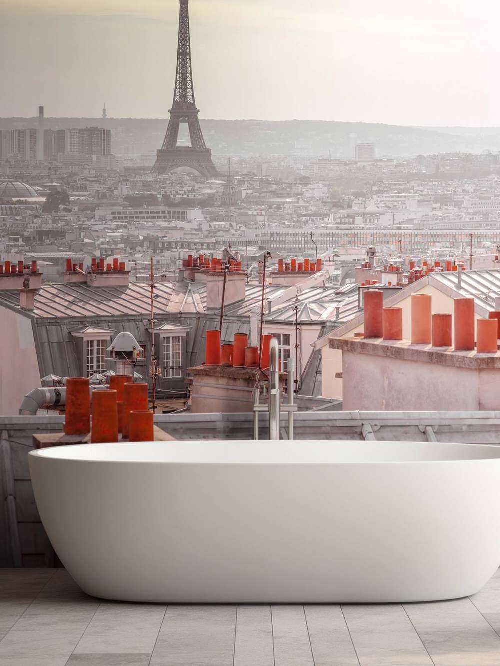 Morning view of the Eiffel Tower from Montmartre. Combine this photo wallpaper in your room.