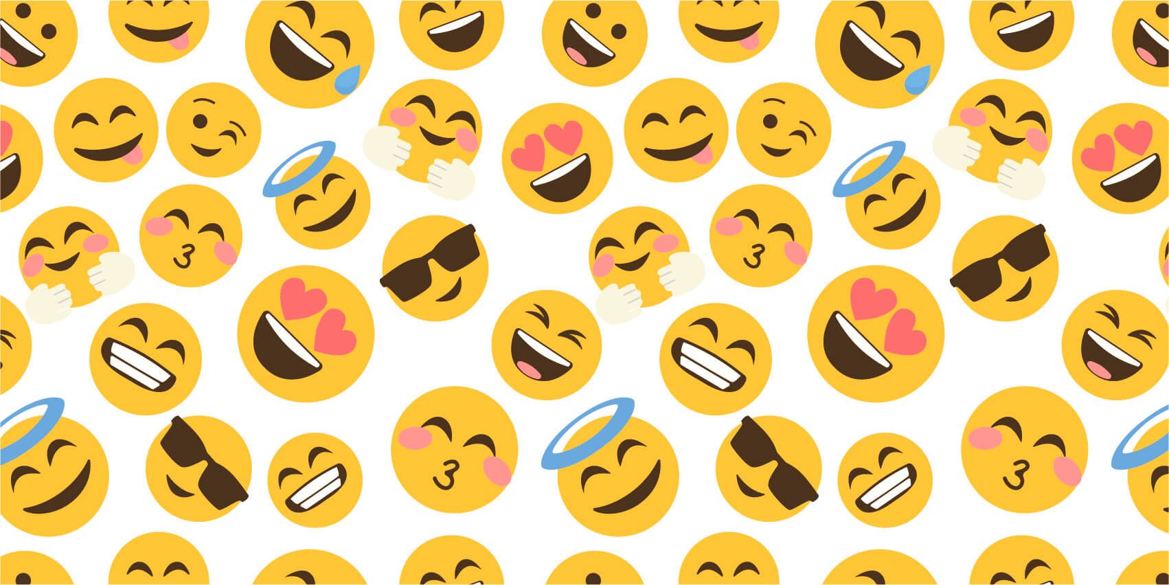 Photo wallpaper with a pattern of cute and funny smiley emojis on a white background