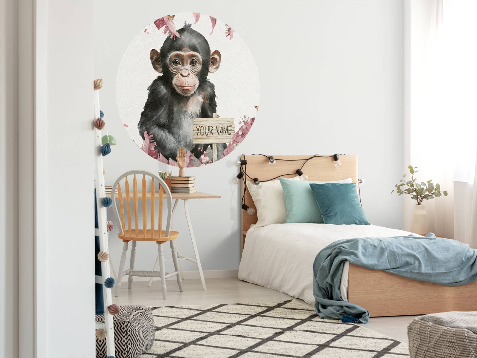 Wallpaper Mural - Baby chimpanzee in the jungle pink