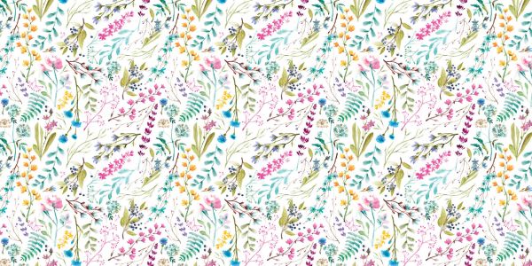 Waterverf patroon van schettige bloemen in verschillende kleuren.