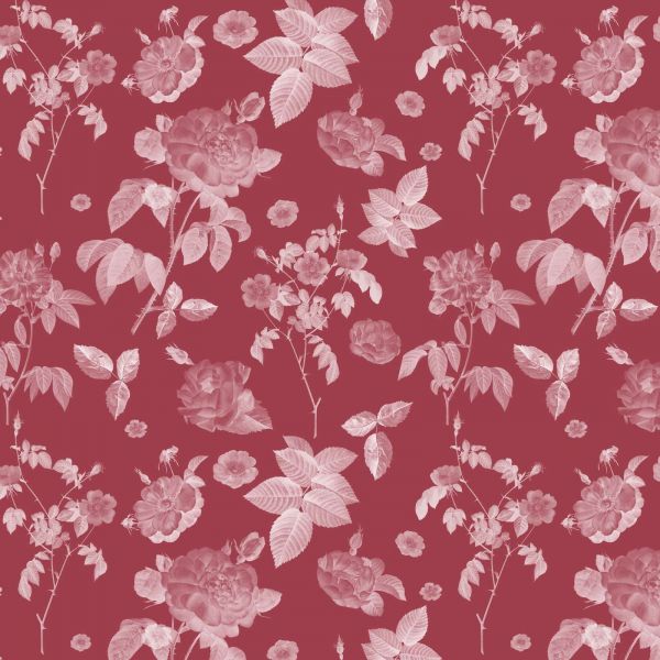 This design brings forth the refinement of classic botanical art, featuring detailed roses and leaves in soft, monochrome shades. The flowers are gracefully arranged against a rich, deep red background, creating a warm and inviting effect. The subtle contrasts in the pattern add depth without being overwhelming, making it a perfect fit for both modern and traditional spaces. This design is ideal for interiors with a classic or romantic style. Combine it with wooden furniture in warm tones and accessories such as gold-colored decorative pieces or delicate flower vases to create a harmonious whole. In a modern interior, this pattern can serve as a striking accent on one wall, combined with simple furniture in white or gray to highlight the rich colors and details. The timeless appearance and versatility of this design make it suitable for various spaces, such as bedrooms, dining rooms, or even stylish offices. It adds a touch of luxury and elegance, creating a refined, serene atmosphere in any environment.