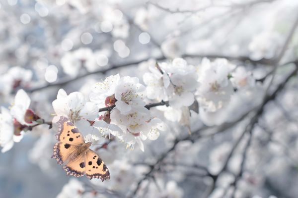 Butterfly with white blossoms