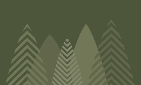 Dark green background with a mix of striped and coloured mountains in different shades of green.