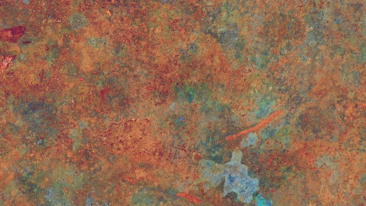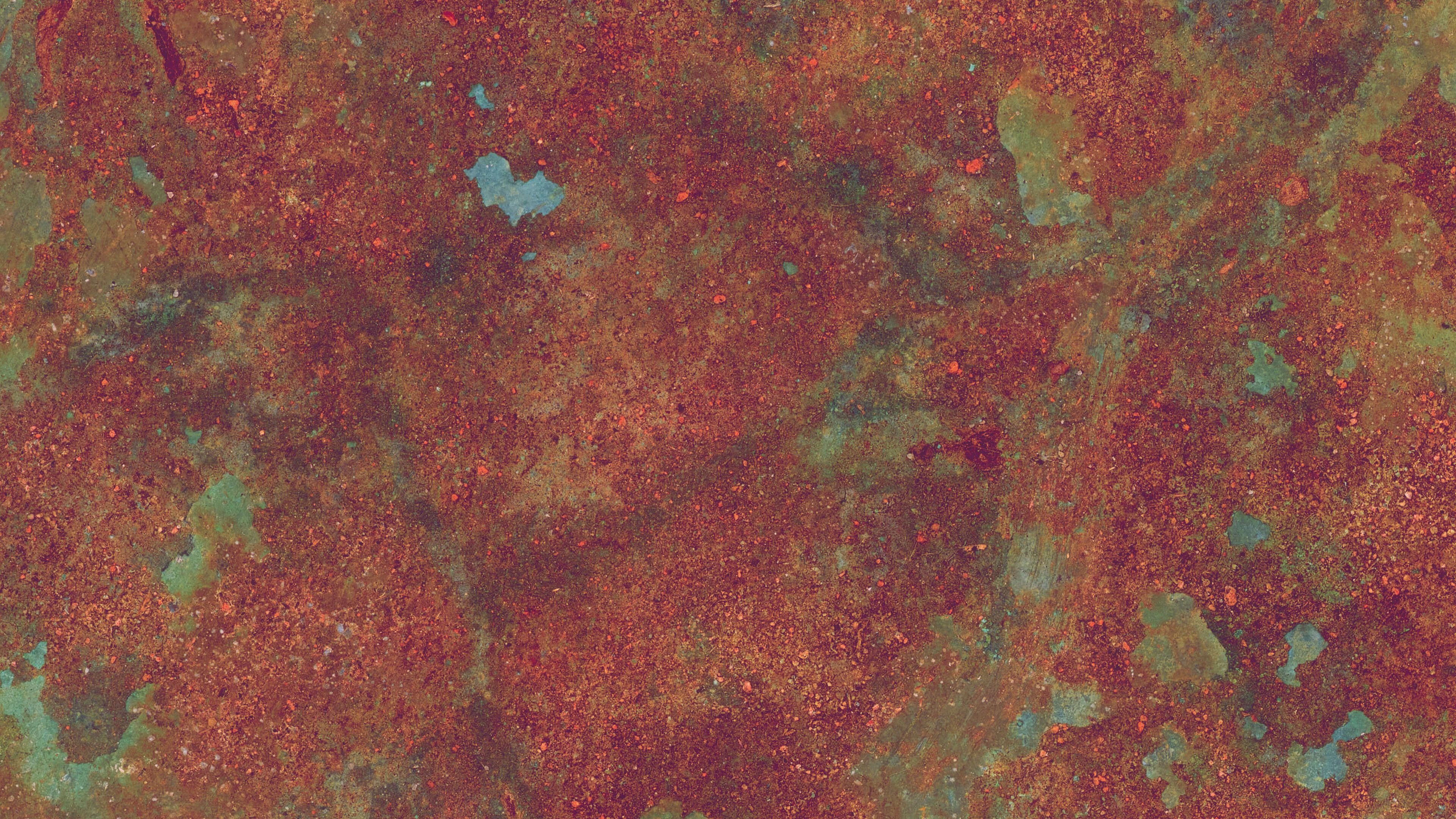 Oxidized metal in colour. Because of the red-brown and green colour you can easily combine this wallpaper in your room.