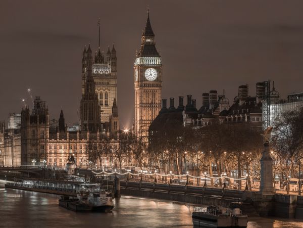 Big Ben and Westminster Abby in the evening. Combine this wallpaper in your living room or bedroom.