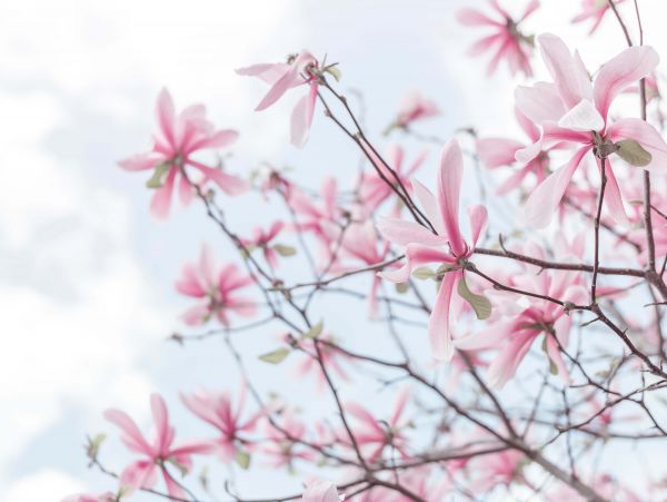 Beautiful pink magnolia flowers on a lovely spring day. This wallpaper adds even more atmosphere to your home.