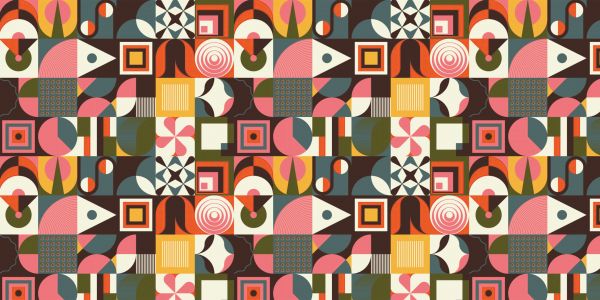 A graphic image of colorful abstract shapes. Combine this in the dining room, for example.