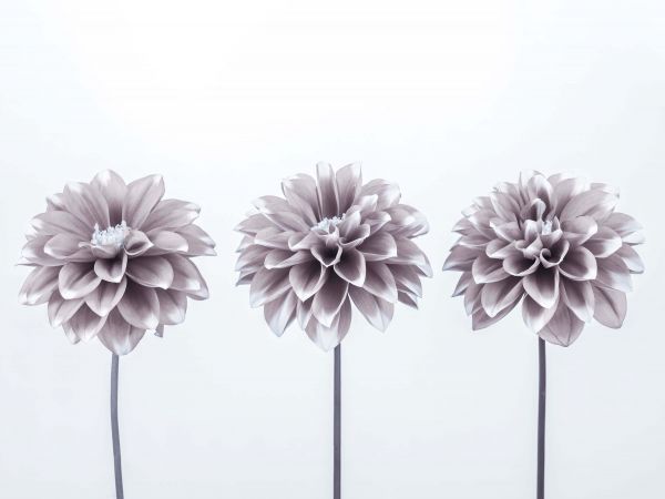 Three dahlias in a row in vintage colours. Combine this wallpaper in your home for even more atmosphere.