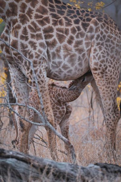 The giraffe’s coat forms a natural mosaic of shapes and lines. The pattern looks rhythmic and almost graphic, while at the same time remaining soft and natural. The close-up creates an abstract image that is still recognizable.