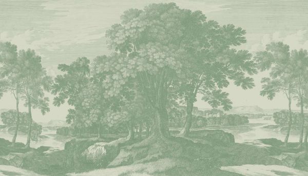 This design radiates the timeless charm of a classic landscape, with imposing trees symbolizing strength and stability. The soft beige colors create a subtle and serene appearance, while the fine details of the trees and the river evoke a sense of depth and movement. The light relief effect gives the design a vintage character reminiscent of old etchings or engravings, ideal for lovers of art historical beauty. This design fits perfectly in a classic or rural interior. Combine it with wooden furniture in natural tones, such as walnut or oak, to enhance the earthy atmosphere. Accents of linen or cotton in light cream colors will further emphasize the serene appearance. For a more contemporary twist, you can work with sleek, modern furniture and accessories in gold or copper, creating a refined balance between traditional and modern. This landscape design is ideal for spaces such as living rooms, studies, or bedrooms, where a calm and soothing atmosphere is desired. The soft color scheme and detailed pattern ensure that it is a subtle yet striking addition to any space.