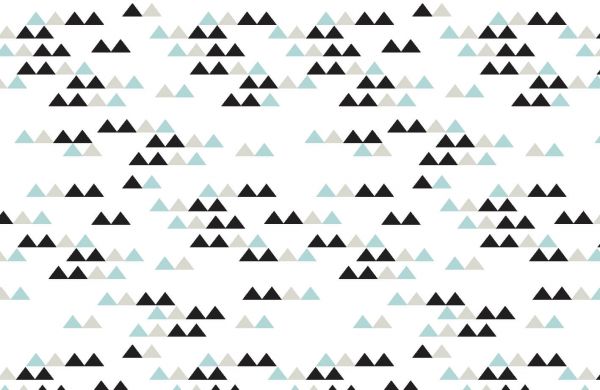 Trendy fotobehang met een patroon van zwarte, grijze en blauwe driehoeken.