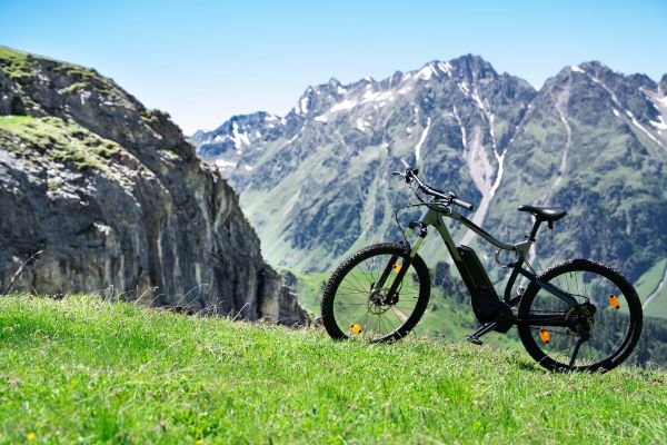 Wallpaper of an E-bike in the mountains in Austria. Apply this to the wall in your bedroom.