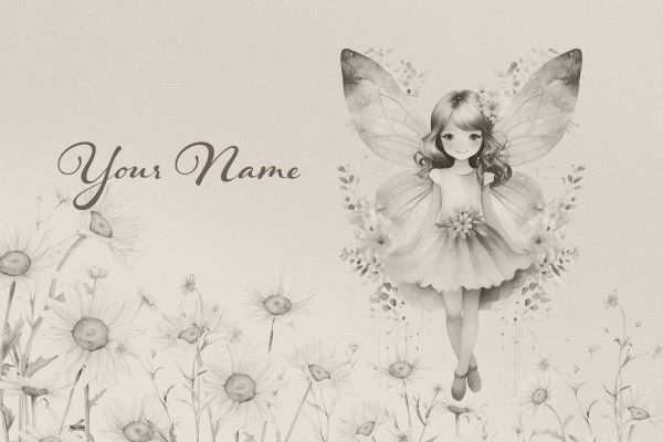 In this serene black and white illustration, we see a lovely fairy gently floating above a field of blooming daisies and small wildflowers. Her dress is simple yet elegant, with a floral pattern in the center connecting her to the landscape around her. Her wings are delicately and dreamily crafted, with a starry structure along the upper edges. The entire composition exudes tranquility, lightness, and natural beauty. The choice of soft gray tones gives this design a nostalgic and refined character, as if it comes straight from an old fairy tale book. It lacks any form of color, but gains depth and sensitivity as a result. This makes it ideal for a Scandinavian interior with natural materials, light woods, wool, and linen, where simplicity and tranquility are key. It also fits perfectly within a classic or vintage interior, especially when paired with antique furniture, white accessories, and romantic details like floral prints or lace curtains. Small accents such as a flower vase with real daisies or a rattan chair enhance the overall look. Perfect for children's rooms, reading nooks, or baby rooms where a calm, loving atmosphere is desired. It is also suitable as a soothing element in creative workspaces or meditative areas. The combination of the fairy and the flower field creates a poetic interplay that radiates softness and imagination.
