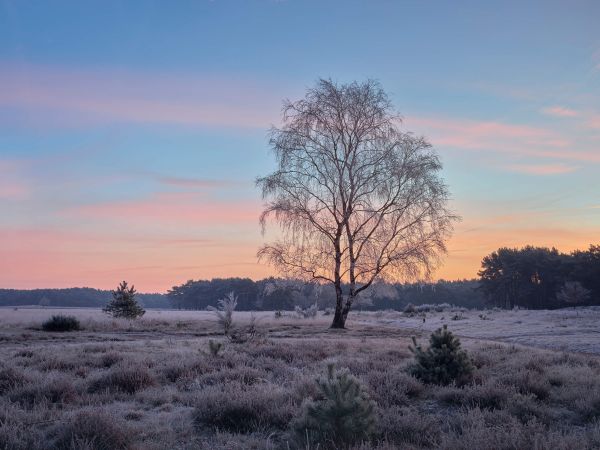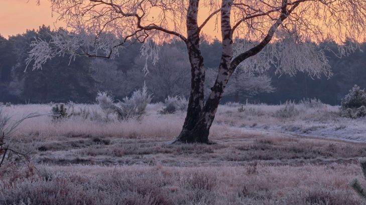Beautiful sunrise on the frozen heath. Combine this wallpaper in your home for even more atmosphere.