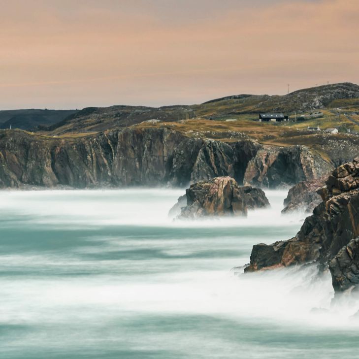Photo wallpaper with tall rock formations on the Scottish coast as wall decor is an impressive addition to any room. The photo wallpaper shows the majestic beauty of the Scottish coast, with tall rocks rising from the sea. The raw and pristine nature of the landscape is breathtaking and is sure to impress anyone who enters the room. The photo wallpaper is of high quality and beautifully depicts every detail of the rocks and the sea. It will make a real statement in any room and give the space a rustic and serene atmosphere.