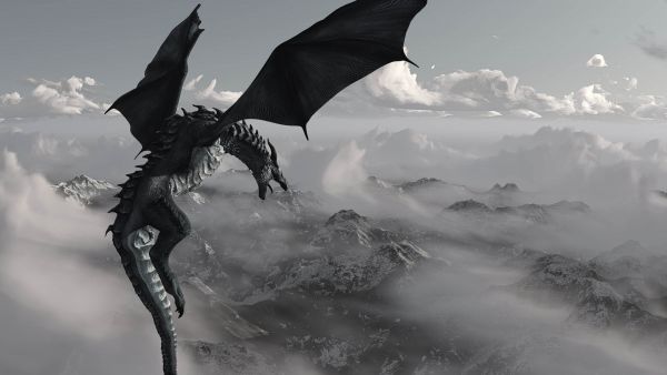 Ice dragon flying above the clouds. With this wallpaper in your room, you will create a real fantasy room.