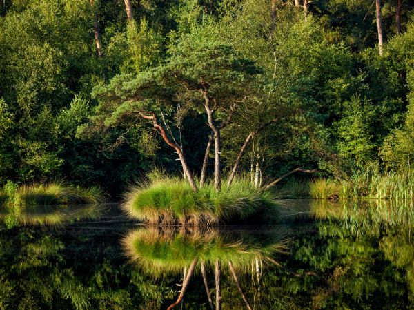 Island in forest lake