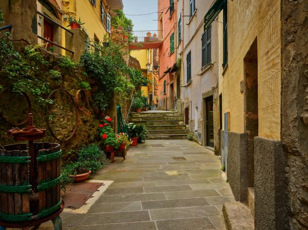 An old Italian street with coloured houses. Get into the Italian atmosphere with this wallpaper in your home.