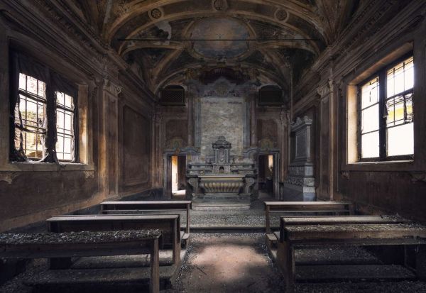 The small chapel of a huge palazzo in northern Italy. Only the numerous doves still worship here.