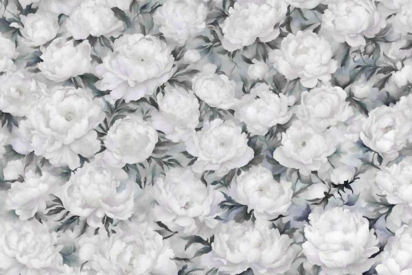 This elegant design captures the beauty of peonies that almost seem to float against a bright, pastel blue background. The delicate transitions between white, light blue, and soft gray tones give the flowers a dreamy appearance, while subtle accents in the leaves and petals provide a refined level of detail. The fresh blue tones fit seamlessly into both modern and classic interiors. In a Scandinavian-inspired space with plenty of light wood and white linen, this pattern creates a refreshing, open atmosphere. Combine it with silver or chrome accents for a contemporary look, or with soft, cream-colored furniture and accessories for a romantic touch. The calming appearance of the peonies makes this design particularly suitable for bedrooms, bathrooms, or other spaces where a relaxed ambiance is desired. By adding plants or flowers in matching shades, a harmonious, natural atmosphere is created. Whether you choose a subtle accent or a full wall, the combination of white peonies and airy blue tones adds a sense of freshness and serenity to your interior.