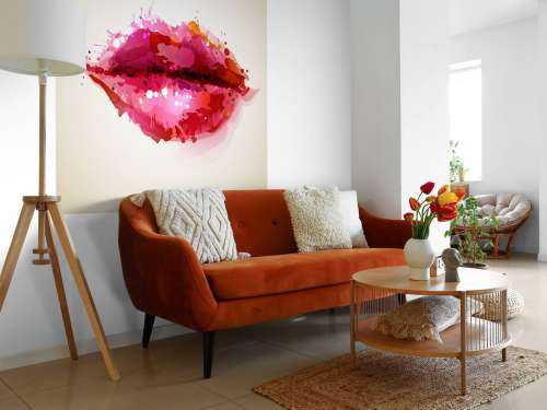 Beautiful red women's lips shaped by abstract stains. Beautiful abstract art