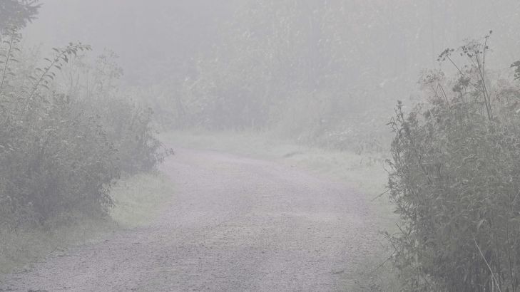 Road through misty forest