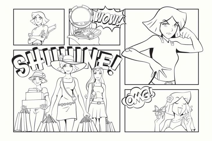 Dit levendige ontwerp is een ode aan vrouwelijke kracht, stijl en vriendschap, verpakt in een stripverhaal vol afwisseling en flair. In verschillende panelen zien we energieke personages in actie: van een vastberaden houding tot bewondering voor een futuristische gadget, van stralende shopmomenten tot vrolijke reacties op mode-items. Woorden als “WOW!”, “OMG!” en “SHIIINE!” versterken de expressieve, speelse sfeer van het geheel.