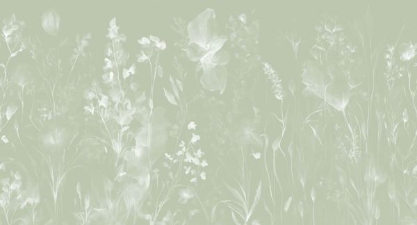An earthy, refined interpretation of watercolor flowers, where olive green and moss green shades blend with soft cream colors. This variant exudes a fresh yet calming character.