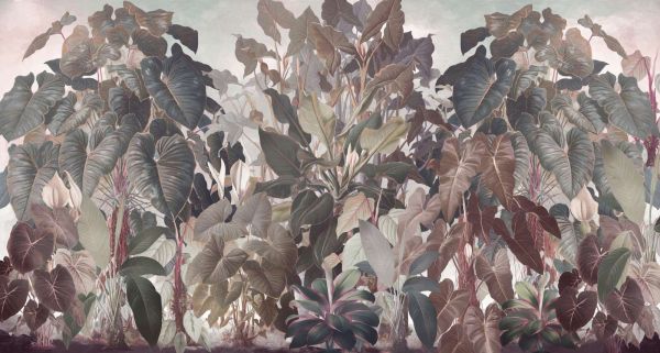 Lush tropical designs with detailed leaves and a rich color palette. These patterns bring the peace and abundance of nature indoors, perfect for a unique and atmospheric space.